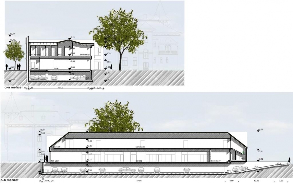 Schlichter Üzletház - Homlokzatok, garázzsal